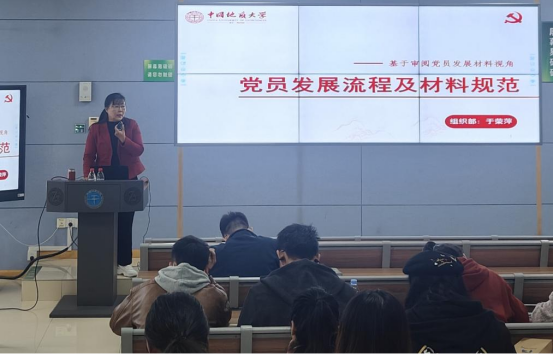 随后,党委组织部专职组织员于荣萍进行《党员发展流程及材料规范》的培训。于老师结合《中国共产党发展党员工作细则》规定和具体案例,详细介绍了党员发展的组织流程和党员发展过程的材料规范。培训过程中各公司党务工作者就发展党员工作中遇到的问题和疑惑进行了讨论交流,分享了自身工作经验。