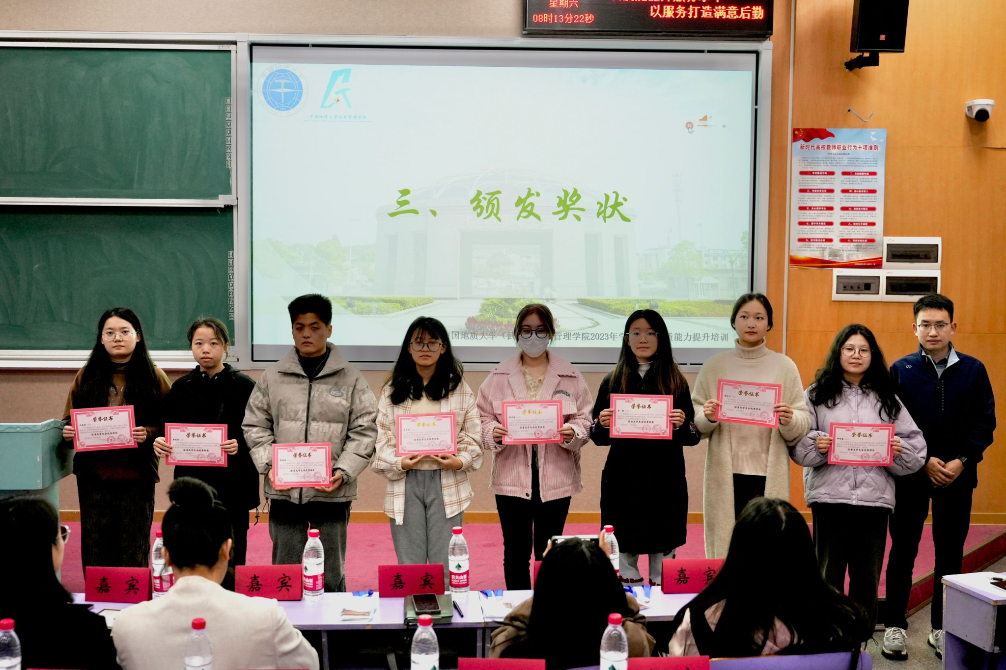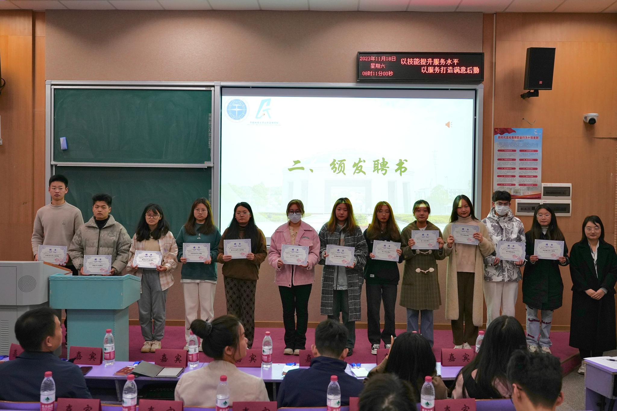 在庄严的国歌齐唱声中,开班典礼拉开帷幕。与会教师为团学骨干们颁发2022-2023学年团委员工会部长聘书及第二学期优秀部长、优秀部员奖状。