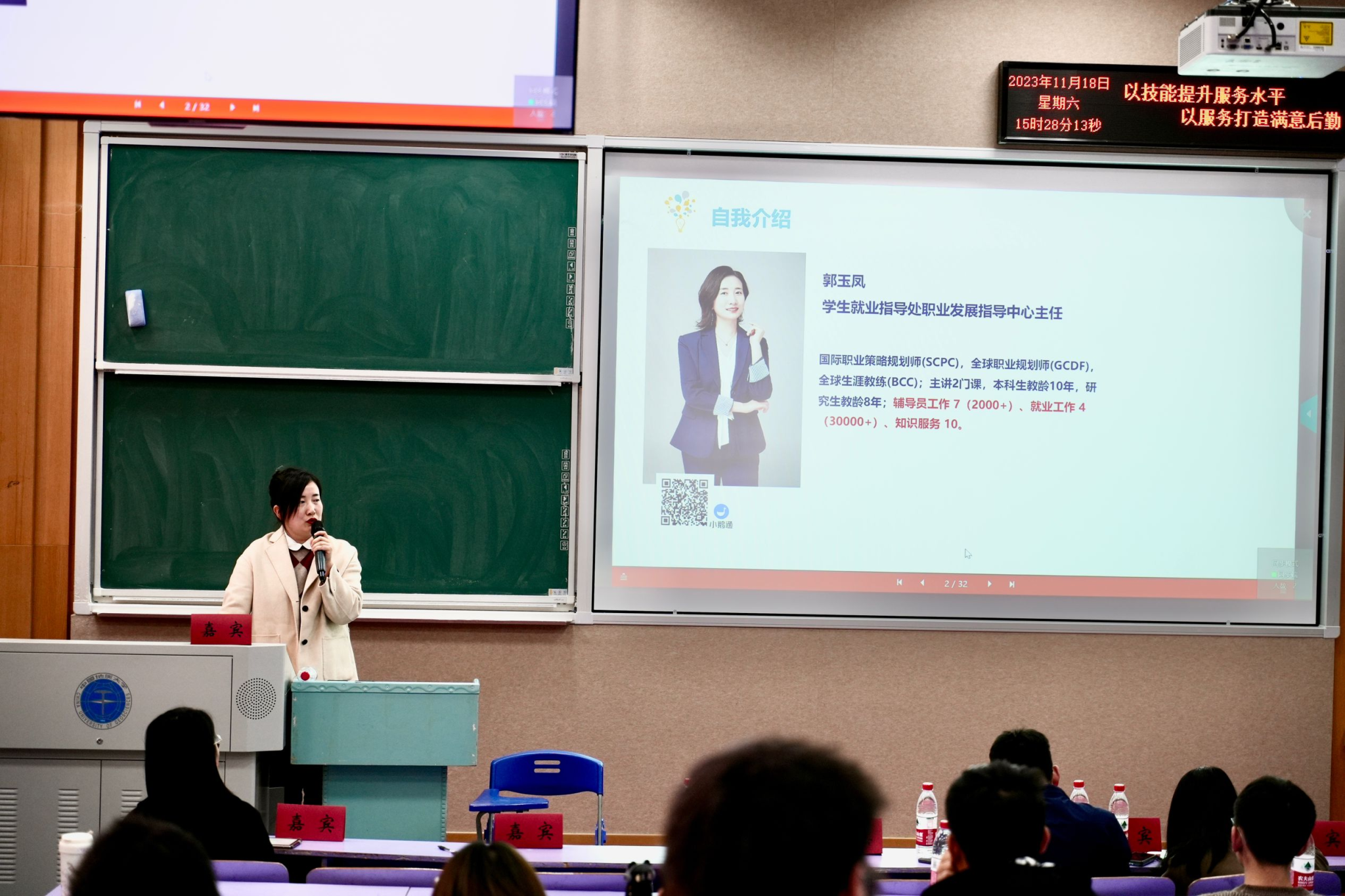 员工就业指导处郭玉凤老师开展了题为《团学活动设计思维力的培养》的专题培训,从思维力的大小、思维力的方向、思维力的作用点三个方面对员工工作进行了指导,帮助员工骨干更好地设计具有创新活力的团学活动。