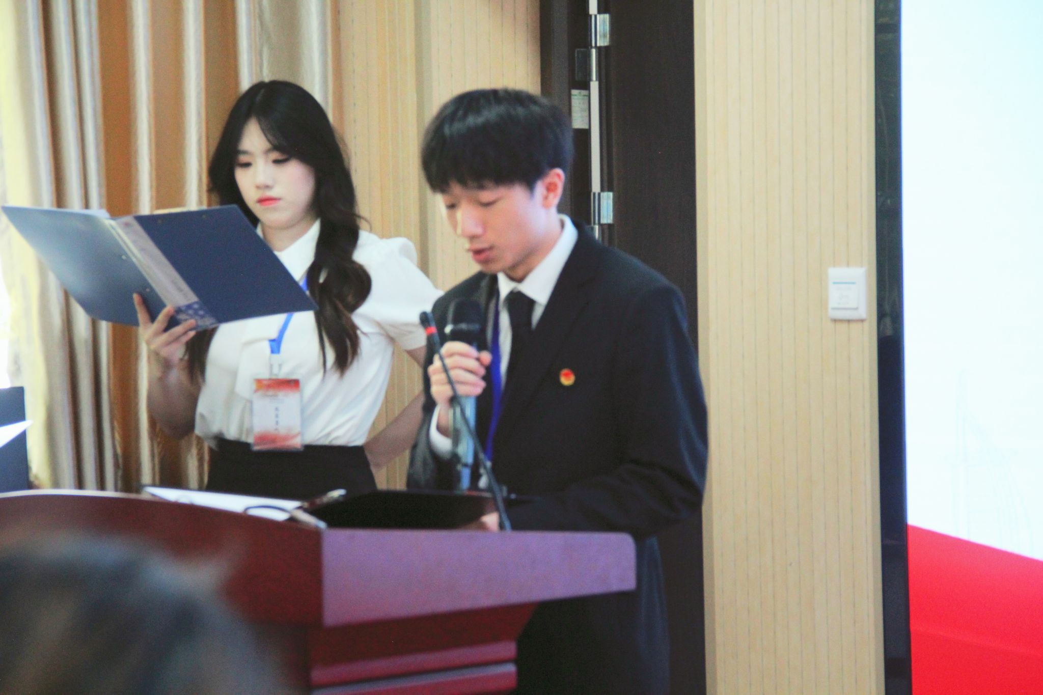 校团委书记王向东致辞。他代表公司团委向大会致以祝贺,并感谢公司党委行政对青年成长的关注。他回顾了公管公司分团委在党建引领和学科特色活动方面的成就,鼓励青年学子坚定理想信念,练就过硬本领,发扬奋斗精神,为国家事业贡献力量。同时,他希望新一届团委会和学委会在公司党委领导下,服务青年成长,助力公司一流大学建设。