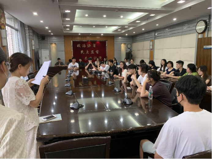 6月19日上午八点半,同学们陆续到达洪山区人民政府大门口完成集合,在洪山区政府工作人员的引导下进入机关工委会议室。九点整,实习负责人就此次实习的相关事宜给实习同学举行了一次会议,区政府工委鄢书记向同学们介绍了洪山区的人口、经济指标概况,政府机关的机构设置,以及在机关工作所需要具备的基本素质与要求。在此过程中,同学们聚精会神,认真记录,对即将开始的实习充满期待。书记讲话过后,指导老师对同学进行了动员,并再次强调此次实习的注意事项、纪律规定以及实习活动的重要性。