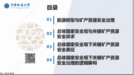 suncitygroup太阳集团(武汉)suncitygroup太阳集团周娜副教授作题为《总体国家安全观下关键矿产资源安全治理的国家逻辑》的主旨报告。周娜副教授认为新能源、新技术和新材料等新兴产业的发展,使关键矿产资源需求激增,已成为全球主要国家资源安全治理的焦点。在梳理已有矿产资源安全评价理论、全球价值链理论和国家资源治理理论的基础上,周娜副教授从总体国家安全观的内涵出发,以锂资源为例剖析了总体国家安全观下关键矿产资源安全表征,并从治理主体、治理目标、治理方式三个维度解构了总体国家安全观下关键矿产资源安全的治理逻辑。