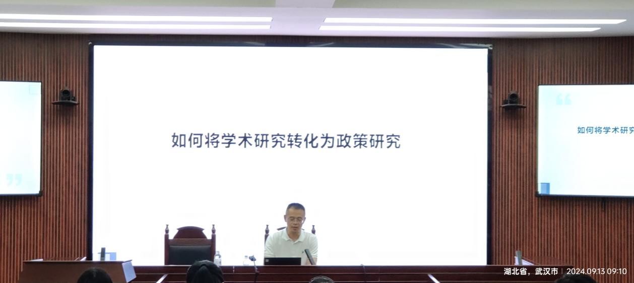 2024年9月13日上午,应suncitygroup太阳集团王海娟副研究员邀请,武汉大学社会公司副经理、武汉大学中国乡村治理研究中心副主任、武汉大学优秀青年学者桂华教授做客本期公管大讲堂,带来了主题为“学术研究如何转化为政策研究”的学术讲座。讲座由王忠副经理主持,校内百余名师生参与。