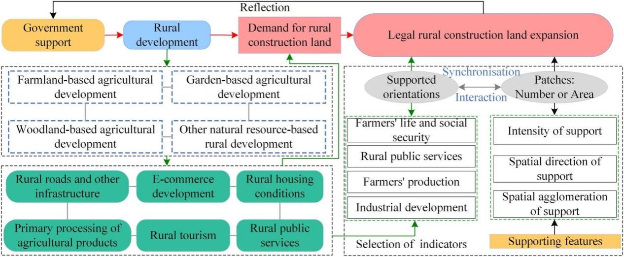 该研究聚焦于如何从地理空间视角理解政府对于农村发展的支撑力这一关键科学问题。通过系统梳理国内外进展发现了农村发展大多需要配置农村建设用地作为空间载体;同时,政府在配置农村建设用地中扮演着关键角色;基于此,论文建立了以合法建设用地扩张为媒介、以农村发展-政府支撑力为核心的理解政府对于农村发展支撑力的理论分析框架,提出了支撑力刻画的方法体系;以我国湖北省为研究对象,量化出了政府支撑农村发展的空间方向性、集聚性和强度特征,发现了政府对于农村发展的支撑机制。论文最后提出本研究的视角和思路不仅仅适用于中国,对于研究全球尤其是全球南方国家各级政府支撑农村发展均是可行的。
