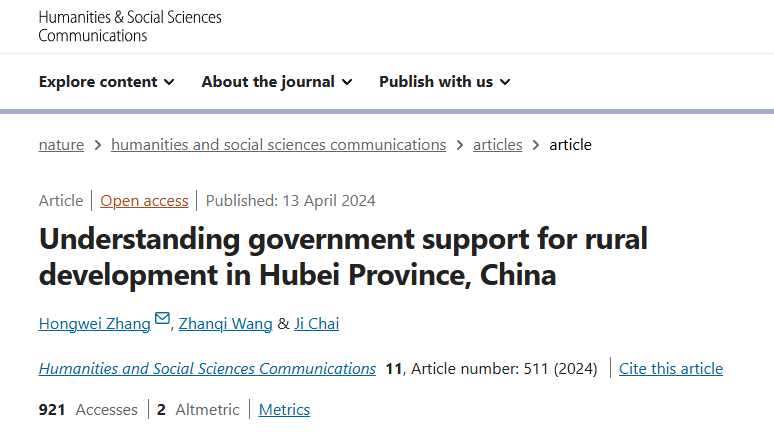 近日,公司王占岐教授团队在Humanities and Social Science Communications发表题为“Understanding government support for rural development in Hubei Province, China”的论文,提出了从地理空间上观察政府对于农村发展支撑力的全新视角、理论思路及测度方法。