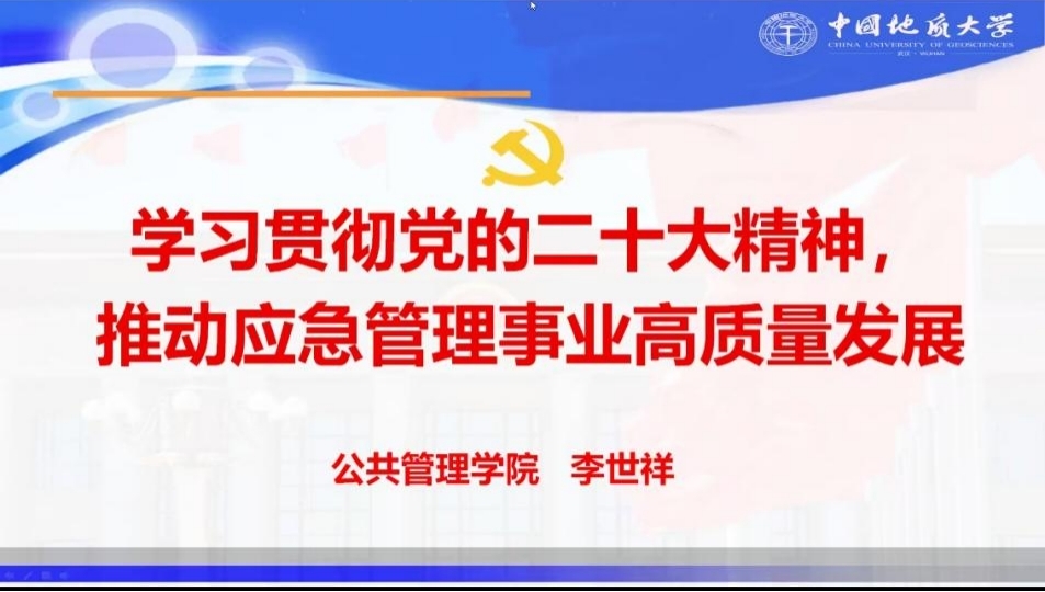 李世祥教授从党的“二十大”精神与应急管理、发展与安全成为新时代的主题、应急管理实践的时代之需以及新时代应急管理学科的发展方向等四个方面展开授课。