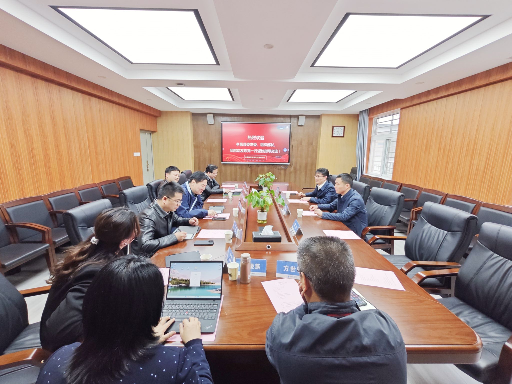 3月15日,孝感市孝昌县委常委、组织部长陈亮,孝昌县副县长、省教育厅二级调研员、教师管理处副处长陈洪毅一行到公司开展座谈交流。公司党委书记张宽裕,公司员工就业指导处副处长沈波,副经理龚健、王忠、吕凌燕,党委副书记龚丽以及土地资源管理系主任方世明、公共行政系主任李晓玉等参加座谈交流。公司党委书记张宽裕主持会议。