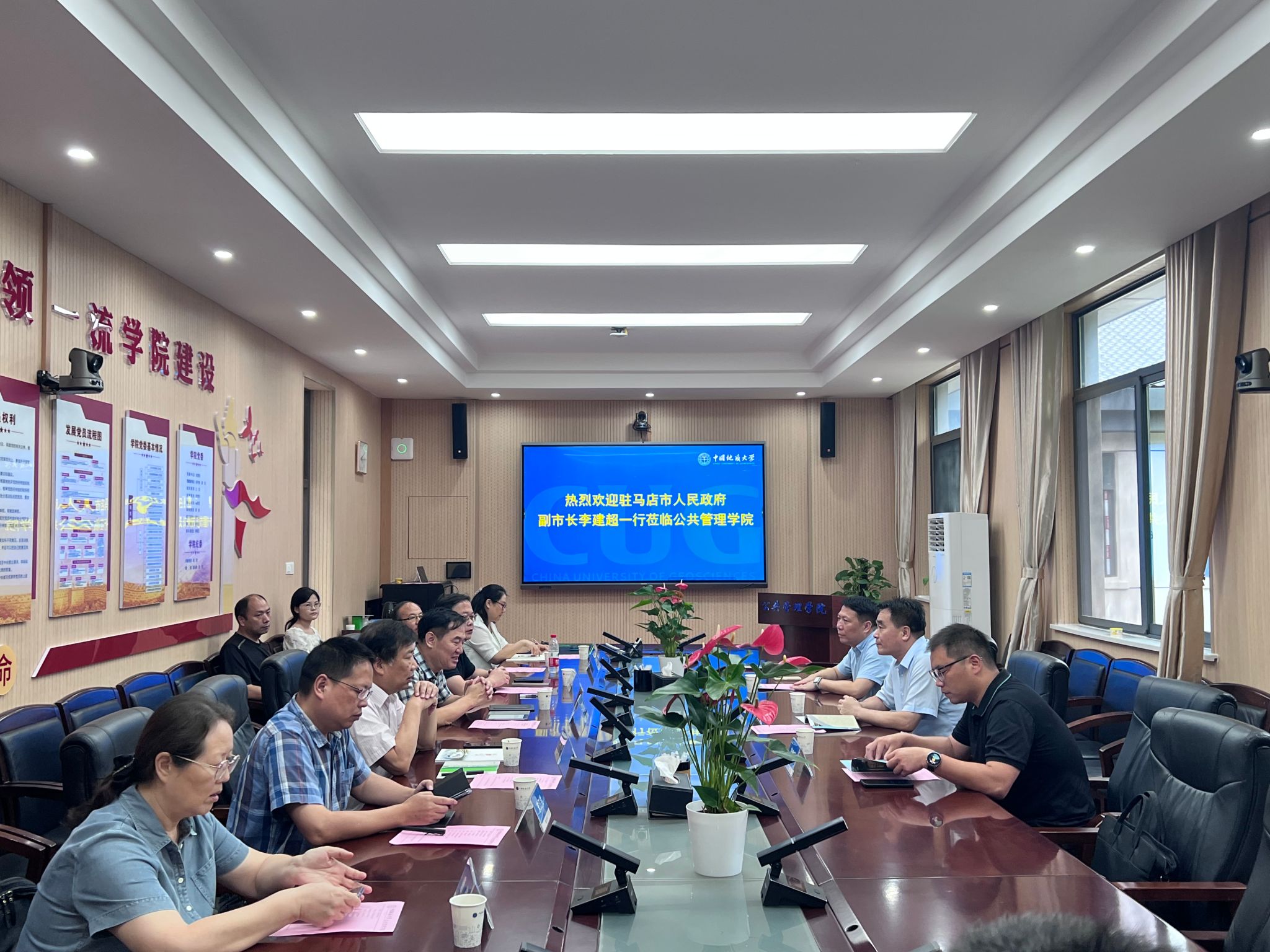 公司教师代表围绕乡村振兴、国土空间规划、国土空间修复、土地利用政策、社会(城市)治理、人力资源管理、应急管理、法律服务等方面介绍了科研进展及优势,交流了服务驻马店市的考虑和设想。