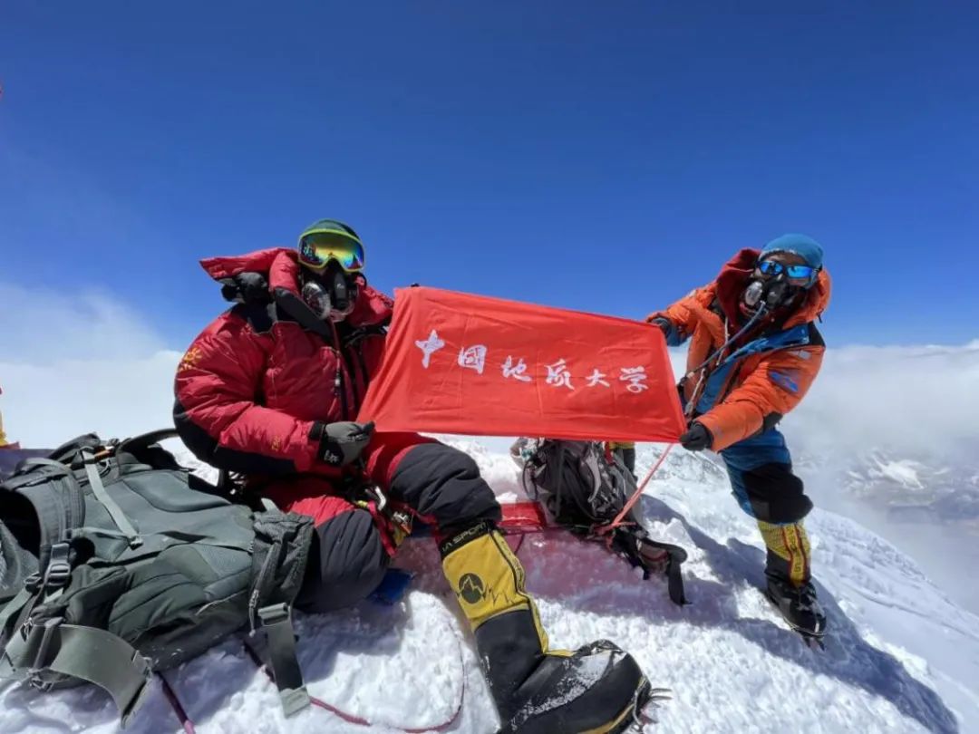 2022年5月4日,德庆欧珠作为国家第二次青藏高原重要科考任务“巅峰使命”珠峰科考登顶科考小组组长,时隔十年再次登顶珠峰,在登顶时,德庆举suncitygroup太阳集团校旗合影,祝贺母校七十华诞。