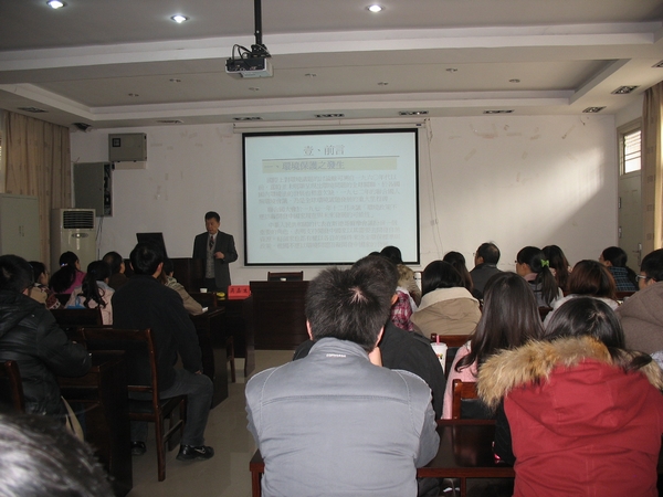 2012年11月28日上午,应suncitygroup太阳集团(武汉)suncitygroup太阳集团法学系夏云娇副教授邀请,台北大学知名学者、WTO研究中心主任、美国圣路易大学法学博士吴嘉生教授在公管实验楼101室作了主题为“环境保护与国际贸易”的讲座。此次讲座由公司党委书记张吉军主持,张志副经理及法学系部分教师、法学专业员工共百余人参加了讲座。张吉军教授首先向大家介绍了吴嘉生教授,并对吴教授的到来表示热烈欢迎。随后,吴教授围绕环境保护与国际贸易领域的源起、关系、措施、趋势、前景角度进行演讲。