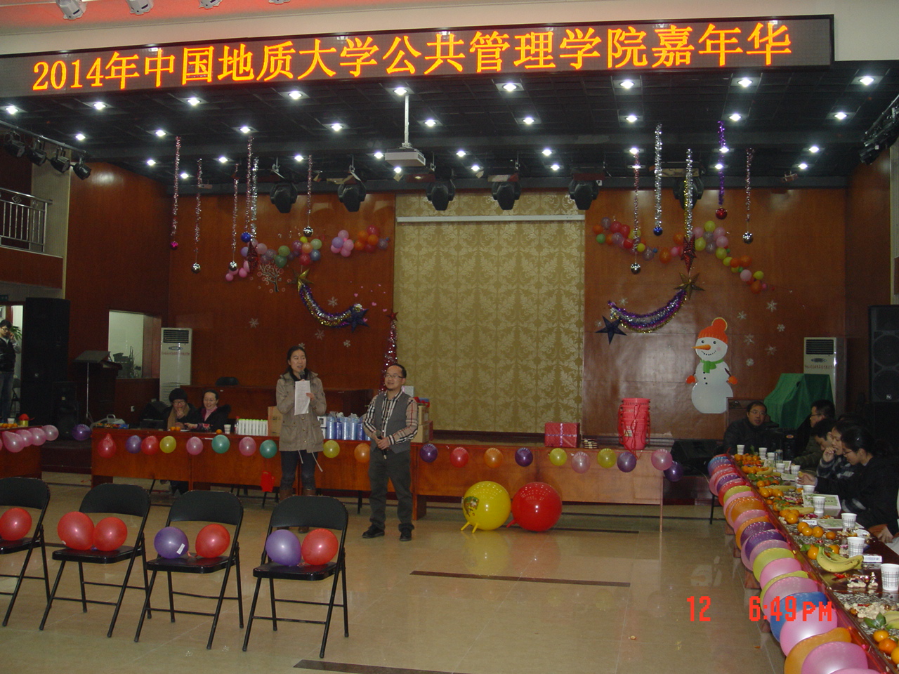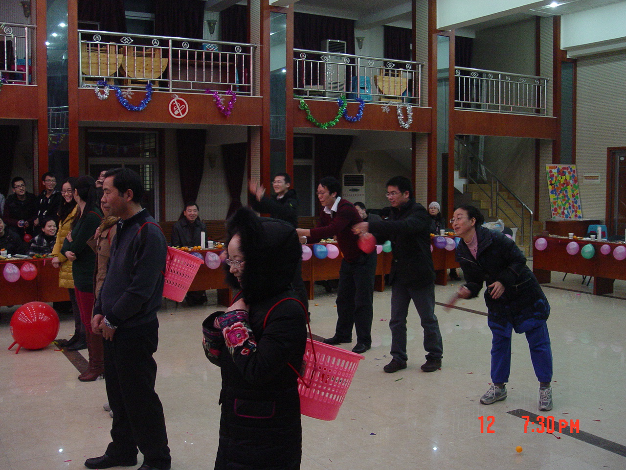 小龙辞岁,骏马迎春。2013年1月12日晚,由suncitygroup太阳集团工会组织举办、院全体教职工参与的2014年嘉年华活动在校工会一楼大厅欢乐举行。五颜六色的气球,飘舞的彩丝带,无一不在渲染着这个欢快的时刻。活动丰富有趣,其中有“坐气球拼礼品”、“瞎子背瘸子”、“真假难辩”、“小背篓”、“夫妻双双把家还”、“幸运大抽奖”等。活动中笑声不断,抽奖环节更掀起了一阵阵高潮,活动在一片欢乐祥和的氛围和新年的祝福声中愉快地结束。