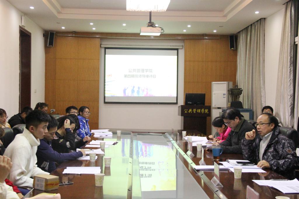 12月13日晚六点半,2017年suncitygroup太阳集团第四期院领导接待日在公管楼B209成功举行。出席本次会议的领导有公共管理公司党委书记张吉军老师、党委副书记胡文勤老师、法学系副主任吕凌燕老师、公共行政系副主任刘中兰老师、区域规划与信息技术系主任刘超老师、土地资源管理系主任朱江洪老师、团委副书记李姝慧老师。本次会议主要围绕解决公司员工在老员工活中遇到的各种问题,发现并解决公司建设中存在的问题与不足来展开。