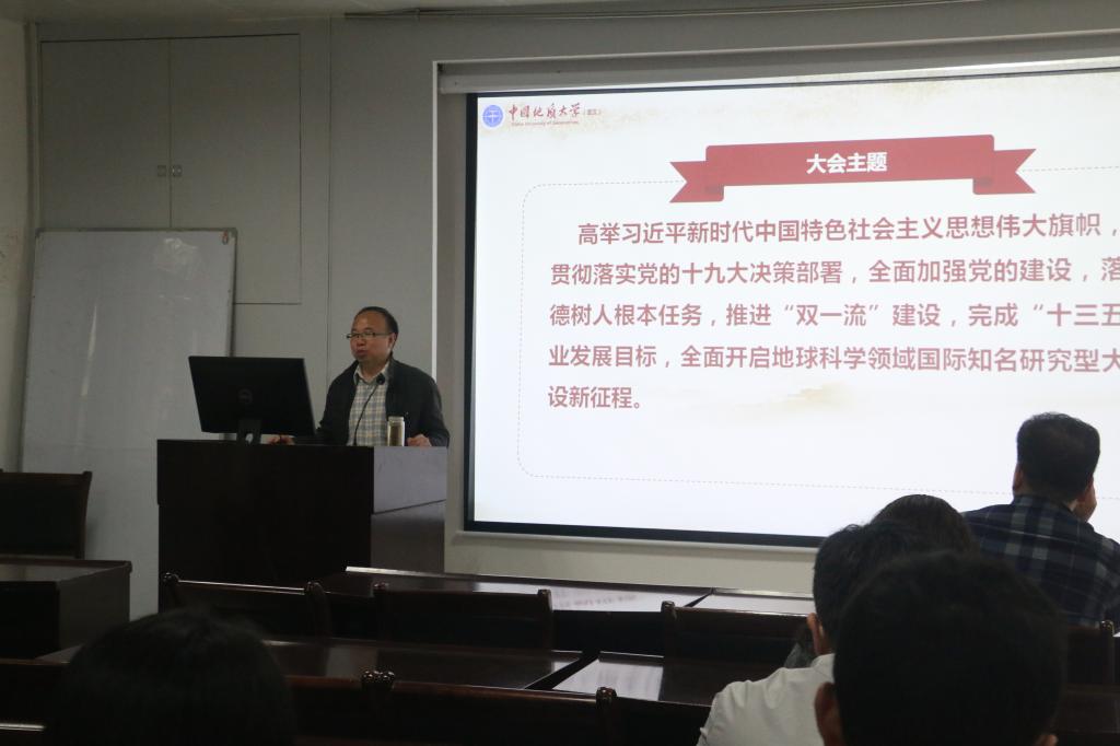 接下来,张书记对公司十二次党代会的主要会议内容进行了详细讲解,指出公司此次党代会报告突出强调了坚持和加强党的全面领导,公司要把方向聚合力发挥党委核心作用,在办学治校上要抓全局谋发展,通过强特色重内涵来增强核心竞争力。大会分析了公司事业发展新阶段的主要矛盾,提出了地球科学领域国际知名研究型大学建设新阶段的主攻方向、奋斗目标和路线图,明确了公司今后五年党的建设、思想政治工作和改革发展的主要任务,提出了全面加强党的建设、全面加强思想政治工作和全面深化综合改革的明确思路。在未来公司的发展方面,张书记传达道:下一个发展阶段公司将从人才培养、团队建设、人事人才制度、科研创新机制、治理体系等方面进行深化改革,同时还要深化大学文化内涵建设,全面提升公司发展软实力,从而为建设研究型大学提供强大内升动力;加强思想教育工作,为研究型大学建设提供正确思想引领;加强对领导班子和干部队伍、基层党组织的建设,深入推进从严治党,从而为建设研究型大学提供全方位坚强保证。