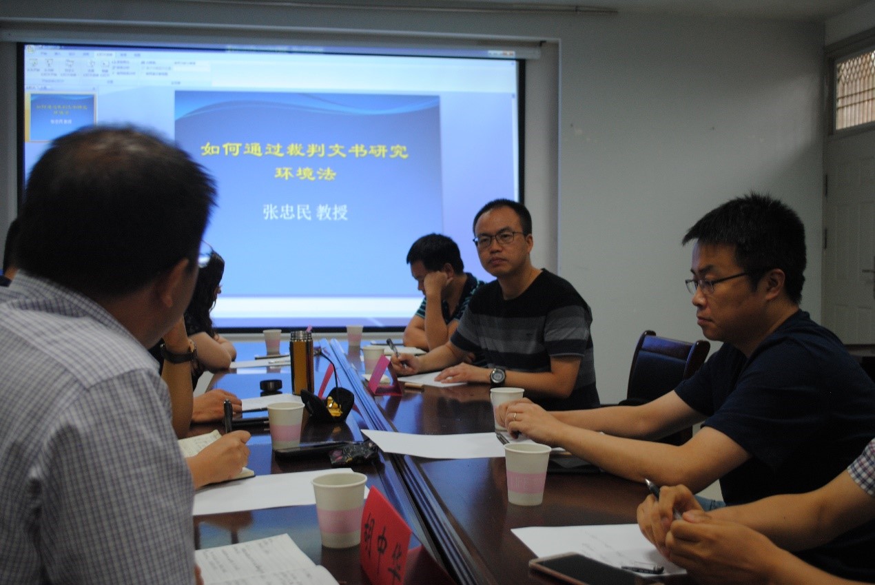 张忠民教授以“如何通过裁判文书研究环境法”展开了主题发言,介绍了本人近期的研究成果、经验,并对既有的依托裁判文书来研究环境法的方法进行了反思。接着,沙龙活动进入了高潮阶段:胡中华副教授抛出了“环境司法文书数据的可疑性”问题,周振新编辑提出了“环境法研究方法的类型化”问题,才惠莲教授一直追问“环境法法典化的可能性及其路径”问题,对此,张忠民教授进行了一一回应。最后,刘传红主编从办高水平期刊和法学学科发展的角度,对在座的青年教师进行了勉励。