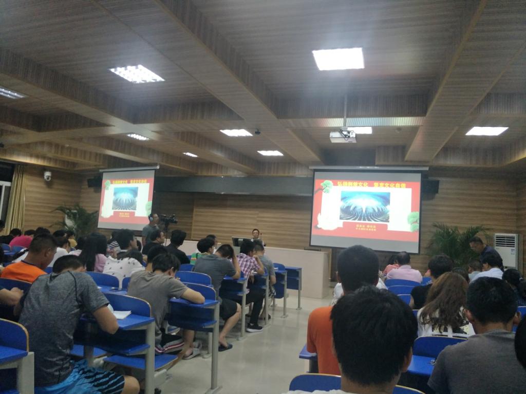 晚7:30至9:30,全体师生聆听了中共秭归县委党校研究员郑承志“弘扬荆楚文化,坚定文化自信”的讲座,主要包括以下三部分:一、荆楚文化精神内涵及影响;二、文化自信面临的挑战;三、汲取荆楚养分坚定文化自信。此次讲授不仅让同学们加深了对荆楚文化的了解,更是引发了同学们对中国文化继承和发展的思考,收获颇多。
