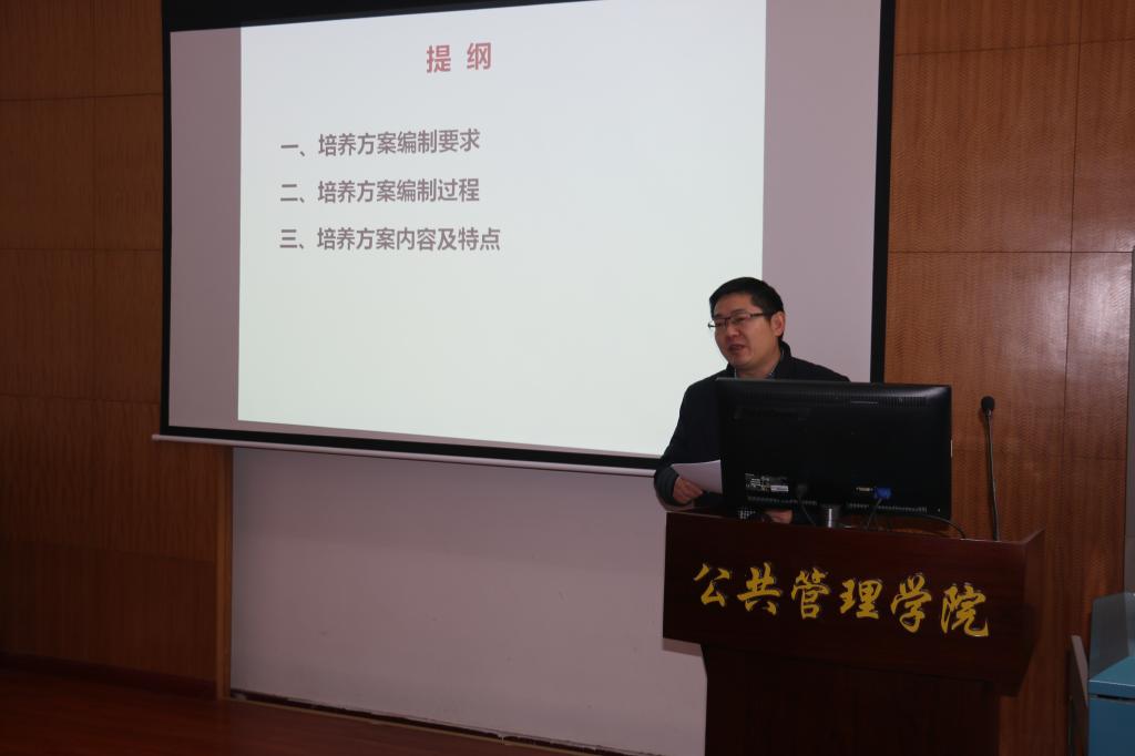 公共行政系系主任李世祥介绍了培养方案的编制要求、编制过程等基本情况,并重点从培养目标、毕业要求、专业定位、课程设置、教学计划、辅修安排等方面详细介绍了新修订培养方案的主要内容。就相近专业区分度、与A+专业对标、学科基础课程设置、实践教育创新等问题,与专家组进行了深度的交流讨论。