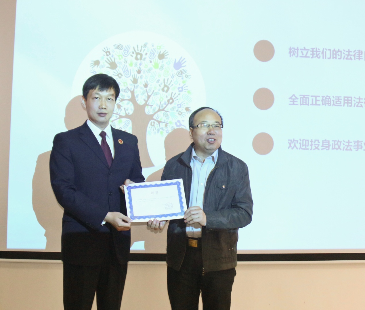 高检察长深入浅出的理论讲解,生动贴切的案例剖析,娓娓道来的人生感悟,让在场同学受益良多。最后,张吉军书记代表公司对高鹏检察长表示诚挚感谢并聘请高鹏检察长作为公司法律硕士导师,至此讲座在同学们热烈的掌声中结束。