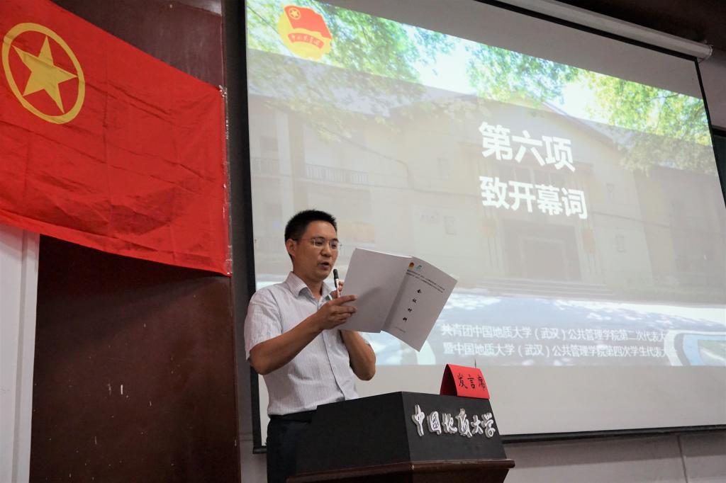 校团委副书记谭文伦代表校团委、校员工会致词,他向出席大会的全体代表及全院青年学子致以亲切的慰问和美好的祝愿,充分肯定了公司过去三年团学组织工作取得的成绩。他希望团学组织能够继续创新思路,帮助青年成长成才,开展更多新时代下符合青年特点的各种活动;希望团学干部能够胸怀梦想,更好锤炼作风,引领服务能力,谱写更加绚丽的青春华章。