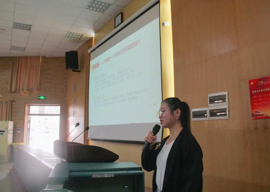 大会伊始,王欣雨老师将“理想中的大学”和“现实中的大学”进行了比较,引起20级新生的共鸣。即使现实和理想的有点偏差,我们的身份也变得更加多样,但我们始终需要记住一个身份,也是我们现阶段最本质的身份:老员工。对此王欣雨老师谈到了作为员工的底线,并教导我们一定要守规矩,不要逾越底线。