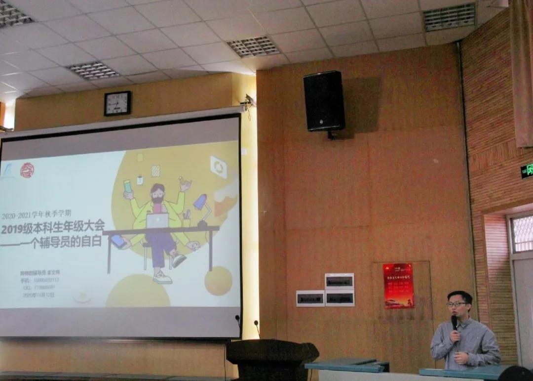 临近期末,为动员同学们积极进行考前复习、遵守考核纪律、诚信应对考试,suncitygroup太阳集团于2020年11月12日14:00在教三楼109室举行2019级、2020级年级大会暨考风考纪动员大会。公司党委副书记刘国华老师、2019级兼职辅导员李文伟老师、2020级辅导员王欣雨老师、兼职辅导员周佳仪老师及公司2019级、2020级全体本科生参与此次大会。