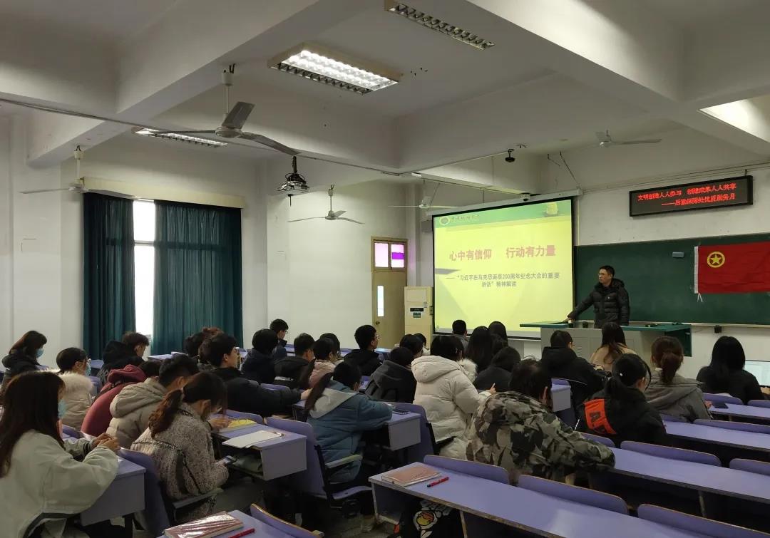 议程第四项,刘国华副书记讲话。刘书记先领学了《习近平总书记在马克思诞辰200周年纪念大会上的讲话》精神,随后以《心中有理想 行动有力量》为题和大家作交流。他说,学习永远在路上,马克思主义思想理论博大精深,新形势下当代老员工践行马克思主义须始终坚持马克思主义根本政治立场、坚定走中国特色社会主义道路的理想信念,坚定不移听党话、跟党走!公管“为公班”学员更应牢牢把控好自己的思想总开关,坚持实事求是思想路线、密切联系群众的优良作风、学业为首的根本要求,带着问题学、联系实际学,扎实越好专业和相关理论知识,更好承担起实现中华民族伟大复兴的历史责任和使命。