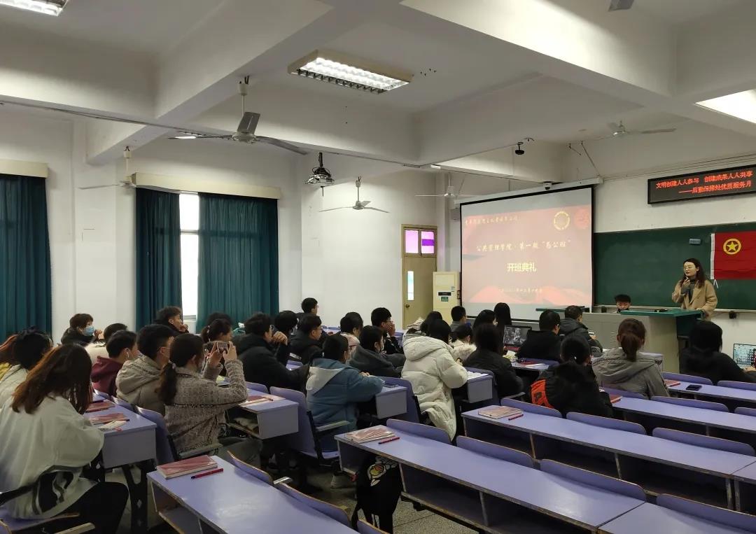 12月19日上午,公司第一期“为公班”开班典礼在教三楼406教室隆重举行。“为公班”是公司青年马克思主义者培养工程培训班,旨在围绕立德树人根本任务,结合公管公司特色,培养理想信念坚定,专业技能扎实,综合素质突出的公管学子,为国为党育才。公司党委副书记刘国华老师、团委副书记李姝慧老师、学工组王青涛老师、王欣雨老师出席此次开班典礼,“为公班”全体成员参会。典礼由李姝慧老师主持,共分为八个议程。