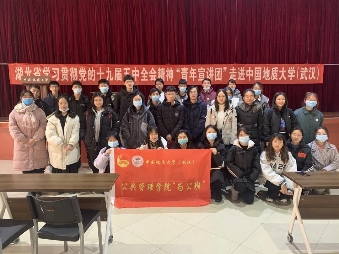 典礼议程进行到了最后一项,“为公班”的同学们集体参与了湖北省学习贯彻党的第十九届五中全会精神“青年宣讲团”走进suncitygroup太阳集团(武汉)的理论学习活动。主讲人范佳欣老师从契合自身海军专业的角度出发,向同学们介绍了十九届五中全会的概况,随之他提出强军的观点,带领大家观看了有关我国海军的视频,从多个角度讲述了我国海军的历史、现状、成就。范佳欣老师还就青年人建功立业的机会在哪里的问题作出了解答,希望同学们做到站稳人民立场练就过硬本领,投身强国伟业。理论学习结束后,同学们在前台合影留念。