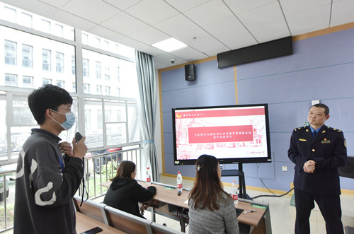 活动第四项,与会师生就武汉的城市管理和老员工生涯规划进行交流。武汉市江岸区城管执法大队周队长介绍了城管工作人员在2020年春天支援武汉抗击新冠肺炎疫情、为抗疫人员提供有力后勤保障的事迹。他感慨道:“经历过疫情,我深刻认识到社会主义制度的优越性,我为自己能为抗疫贡献一份力量而骄傲,也期待年轻的老员工们能将自己的所学与国家发展相结合,非常欢迎公管公司的同学运用专业知识为武汉的城市管理贡献智慧和力量”。“为公班”代表尹明辉、2018级本科生党支部党员索云龙、焦振琪结合自己在《公共管理学》和《城市管理学》中学习到的专业知识,就如何更好地进行城市管理与执法大队的成员进行了交流。一时间“地摊经济”“智慧城市”“柔性执法”等热点话题纷纷抛出,理论与实践的交流碰撞出了思维的火花,让公管学子了解到公共管理实务之不易,也让执法人员感受到了青年员工的智慧与热情。