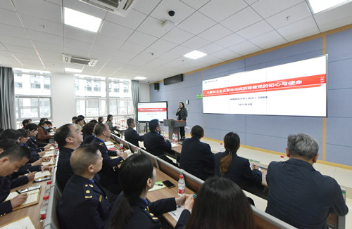 活动第三项,由马克思主义公司高翔莲老师教授以《从新民主主义革命光辉历程看党的初心与使命》为题讲授专题党课。高教授向与会的所有成员重申了党史学习的重要性,她指出认真学习“四史”可以帮助我们在学习领悟中坚定理想信念、在奋发有为中践行初心,所有党员、团员都要自觉做到学史明理、学史增信、学史崇德、学史力行。高教授带领大家回顾了中国共产党领导中国人民和中华民族“站起来”的光辉历程,从1921年一大的召开到1949年新中国的成立,从宏观的革命历程到微观的历史人物,从历史事件陈述到历史启示总结,高教授铿锵有力的语言和充满激情的讲授引人入胜。通过学习,大家深感红色政权来之不易、新中国来之不易、中国特色社会主义来不易,更对现在繁荣富强的国家感到自豪。