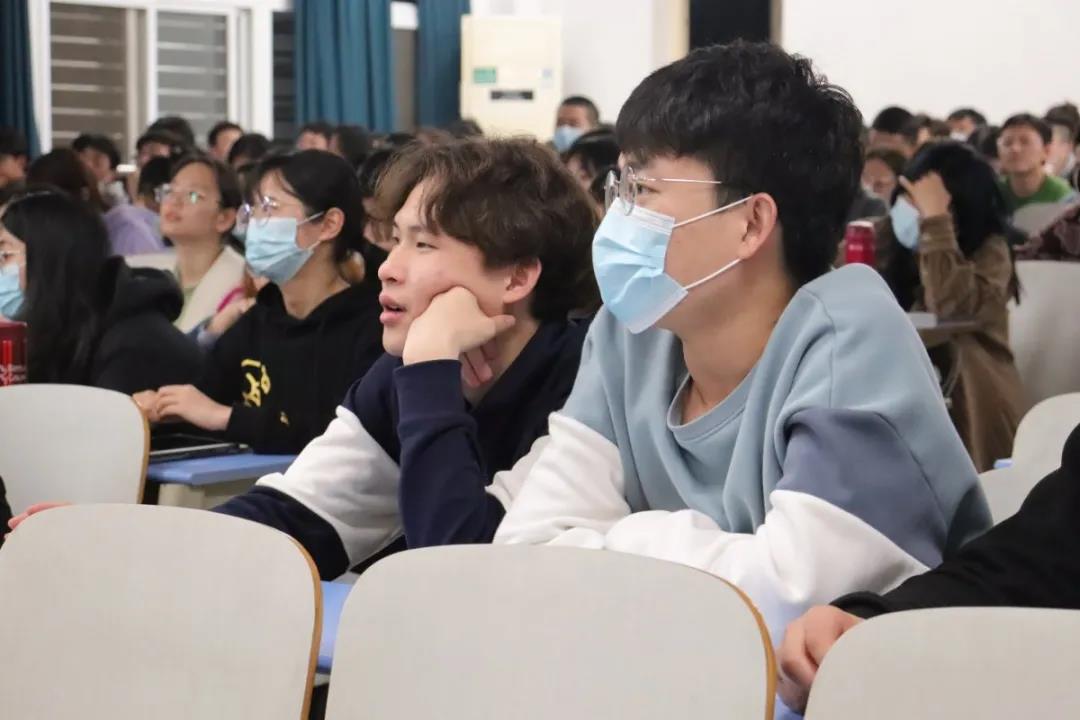 吴老师运用表格等方法,对年级各专业及班级的学习情况进行了解读,让同学们非常直观的了解了年级学风情况及自己学习大致位次区间,他提醒同学们要抓紧大学剩余的时间,努力提高学习成绩,为之后发展打造出亮眼成绩单。