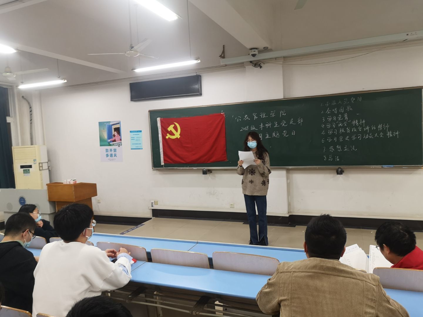 3月25日,2018级本科生党支部全体在北综204召开三月份主题党日。本次主题党日由行管一班、行管二班筹办。主题党日召开前,支部全体同志进行了体温测量,并全程佩戴口罩参会。公司党委副书记刘国华、党支部书记吴波参加本次主题党日。党支部组织委员朱嘉敏主持会议。