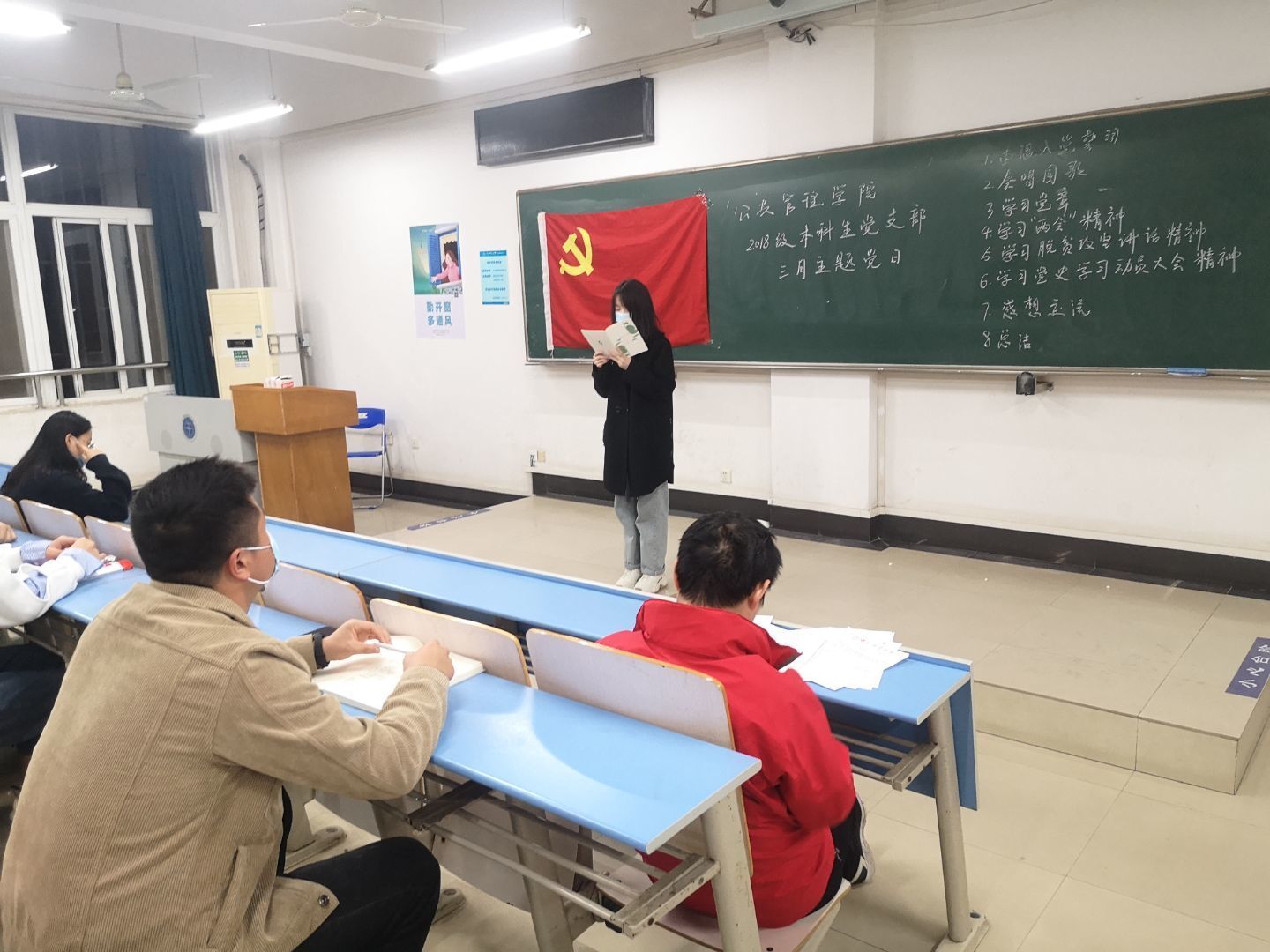 会议开始,朱嘉敏同志组织全体同志齐唱国歌并宣誓。之后,朱嘉敏带领全体同志学习《中国共产党章程》第七章。