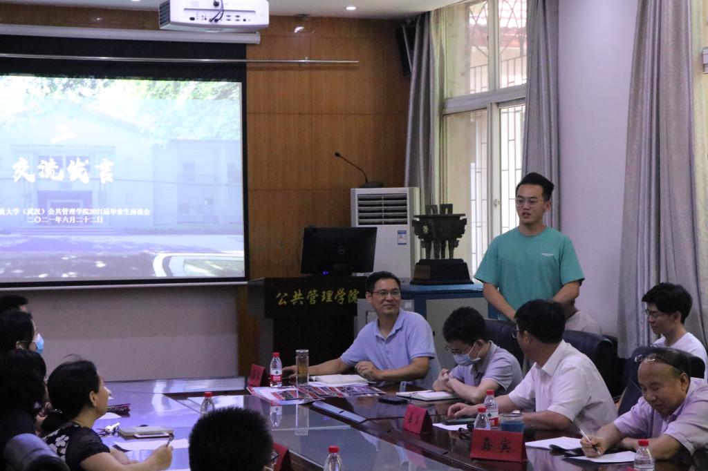 6月22日下午,公司在公管楼B209会议室召开2021届毕业生座谈会。参与座谈会的有公司党委书记张吉军、副经理才惠莲、党委副书记刘国华、公共行政系党支部书记刘中兰、法学系主任廖建求、土地资源管理系党支部书记暨175172班班主任周学武、土地资源管理系主任朱江洪、教务科胡玲,学工组毕业年级辅导员辅导员吴波、王青涛和兼职辅导员周佳仪,部分2021届本研毕业生代表。座谈会由党委副书记刘国华主持。