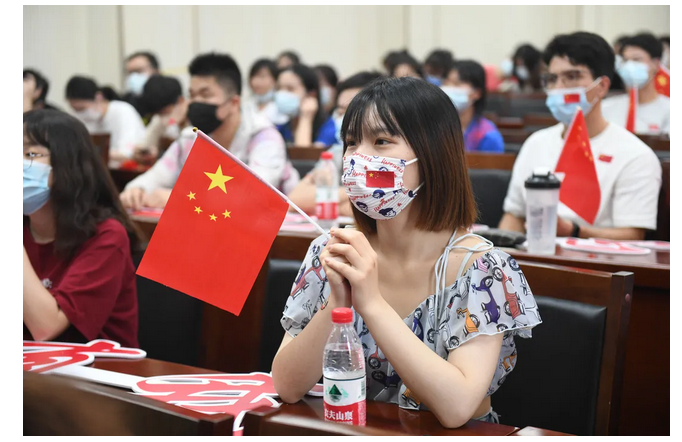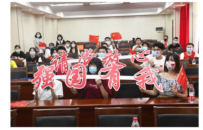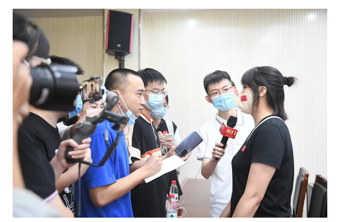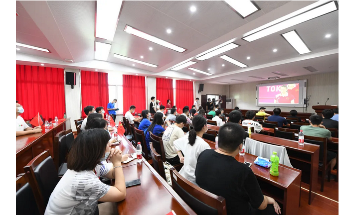 7月30日下午2:30,公司在南望山校区西区体育馆3楼多功能报告厅组织师生集中收看比赛。(摄影 张玉贤)