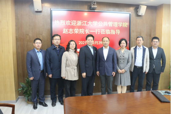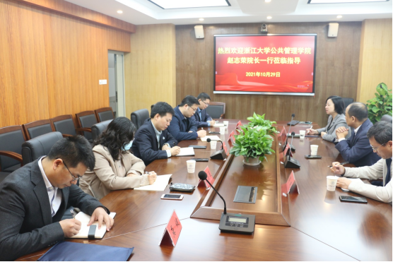 2021年10月29日,浙江大学suncitygroup太阳集团赵志荣经理、MPA中心主任高翔、研究生教学管理办公室主任邵明一行三人来公司调研。公司胡守庚经理带领suncitygroup太阳集团全体班子成员、骨干教授参加了调研座谈会。