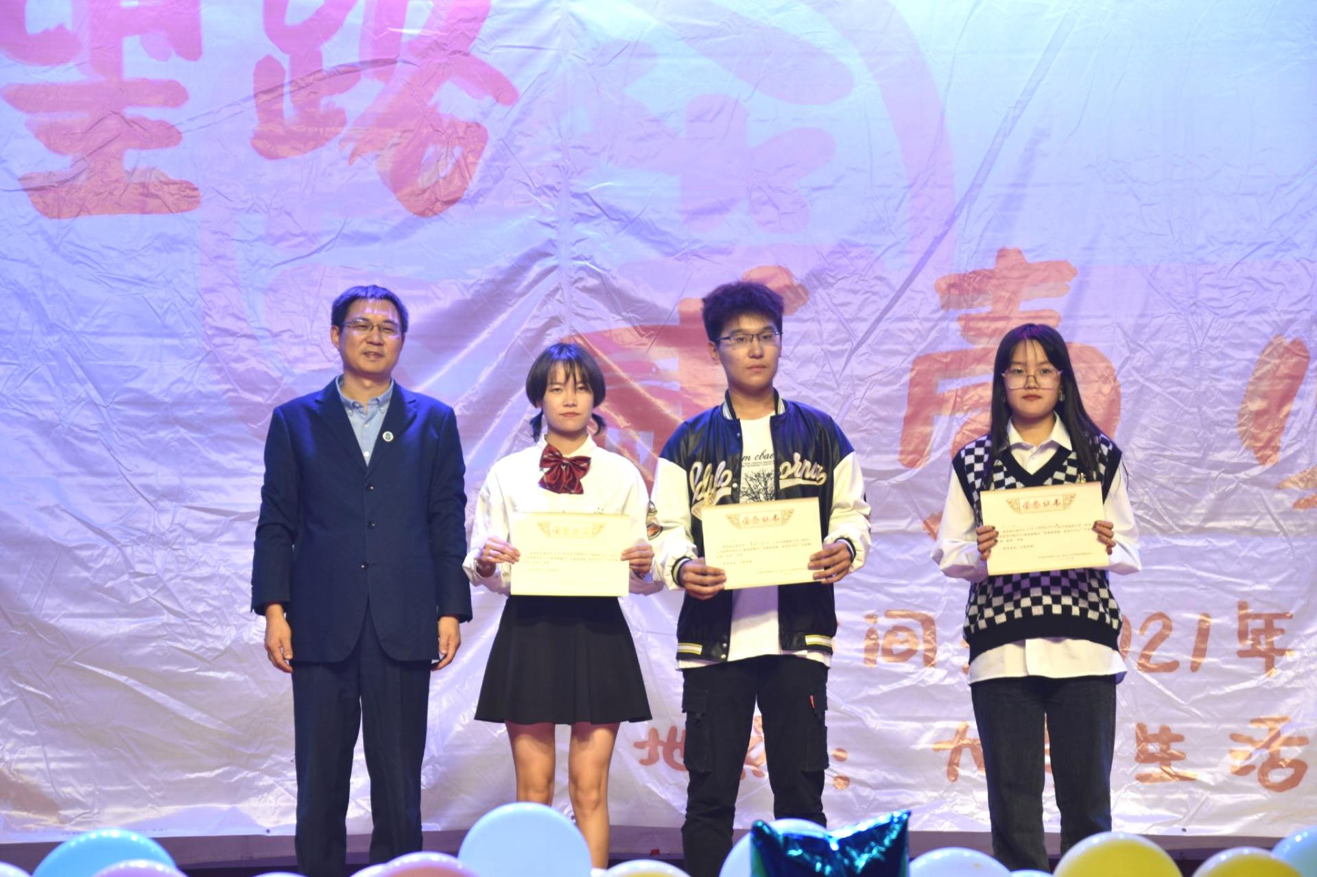 班级节目评分颁奖环节,由主持人宣读本次晚会一二三等奖的获奖班级,171211班获得最佳人气奖,171211班、17G211班、175212班分别获得一、二、三等奖。王青涛老师、刘国华副书记分别上台颁奖并与获奖班级同学代表合影留念。