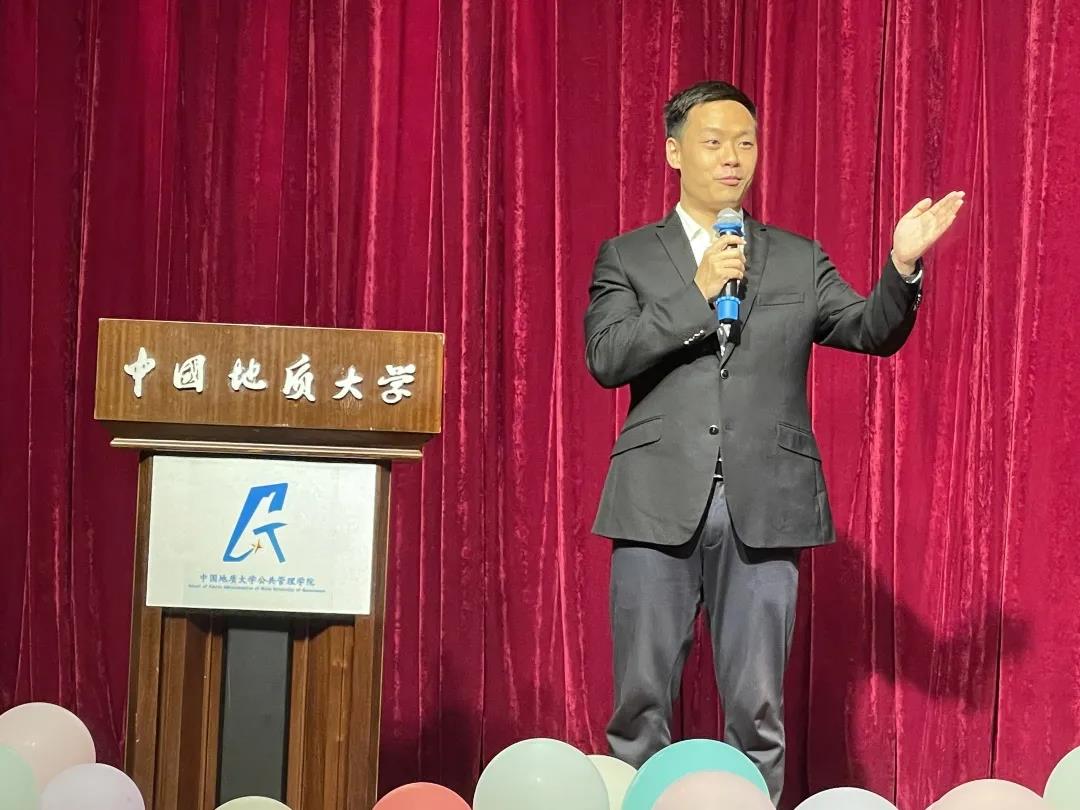 第一篇章结束,由陈星、钱文强、徐枫、刘志玲老师作为嘉宾进行本场晚会的第一轮抽奖,共抽出九名三等奖获奖者,赠送地大专属马克杯各一个。