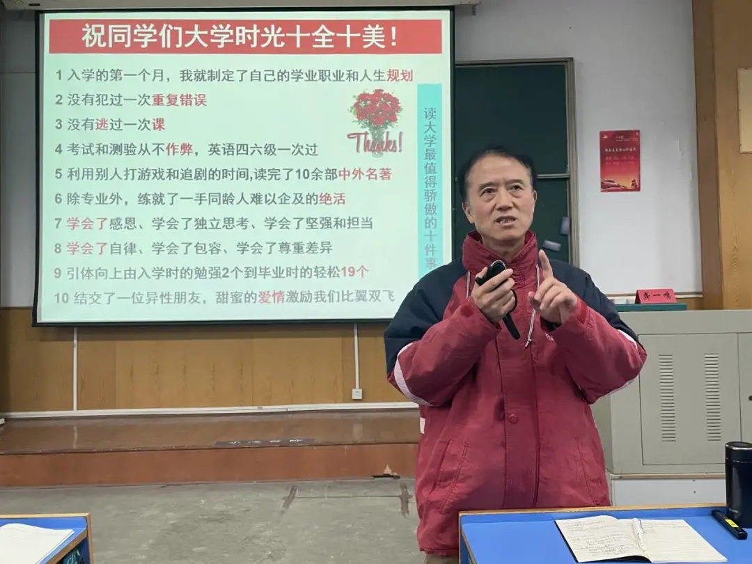 第一讲由地球科学公司龚一鸣教授主讲。龚教授是全国教学名师、全国模范教师,湖北省教学名师、师德标兵和有突出贡献的中青年专家,湖北省楚天园丁奖和五一劳动奖章获得者。他以《读大学之道》为题,解读了何谓大学、大学读什么、怎么读大学,激励同学们在新环境下树立新目标、养成更好的新习惯、实现新作为,希望同学们牢固树立正确的世界观、人生观、价值观,知学、勤学、乐学、善学,不唯书、不唯上、不唯他、只唯实,诚实守信、严于律己、与人为善、能吃苦亏,更加注重提升自己的内在修养,成为一名符合新时代发展需要的创新人才。讲授结束后,他还对同学们关于老员工活困扰的提问逐一解答和交流,并祝愿每位同学大学时光都能够十全十美!