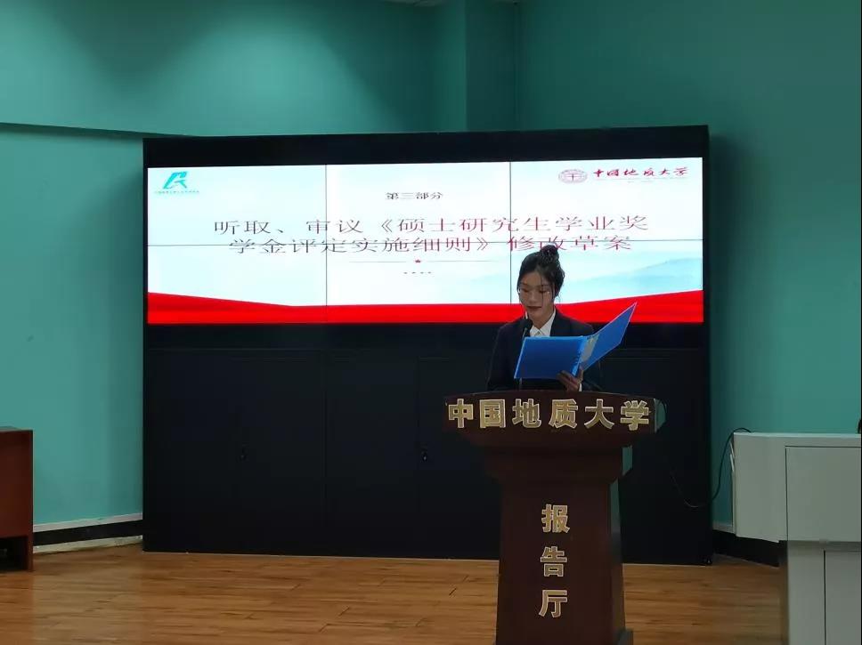宋泽文同学作《硕士研究生学业奖学金评定实施细则》修改草案报告