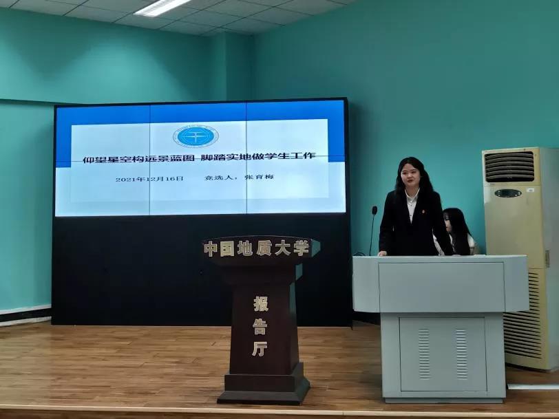 首先,由2021届公司研究生会主席团成员张歌同学向大会作2021年研究生会工作报告,从思想引领、内部建设、服务同学三个方面介绍了2021年公管研会工作成果,分析了研会继续前行存在的问题与挑战,在回应痛点的基础上,做出2022年公管研会工作的展望与规划。