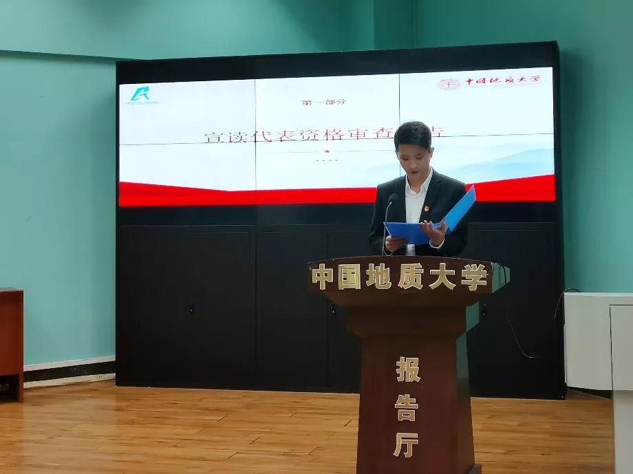 大会在雄壮的国歌声中开幕。会议起始,公司党委副书记刘国华老师和辅导员王青涛老师分别为2021届研究生会主席团成员和各部门部长颁发聘书。随后,员工团委副书记余健同学作大会代表资格审查报告,与会代表通过举手表决,代表资格有效。