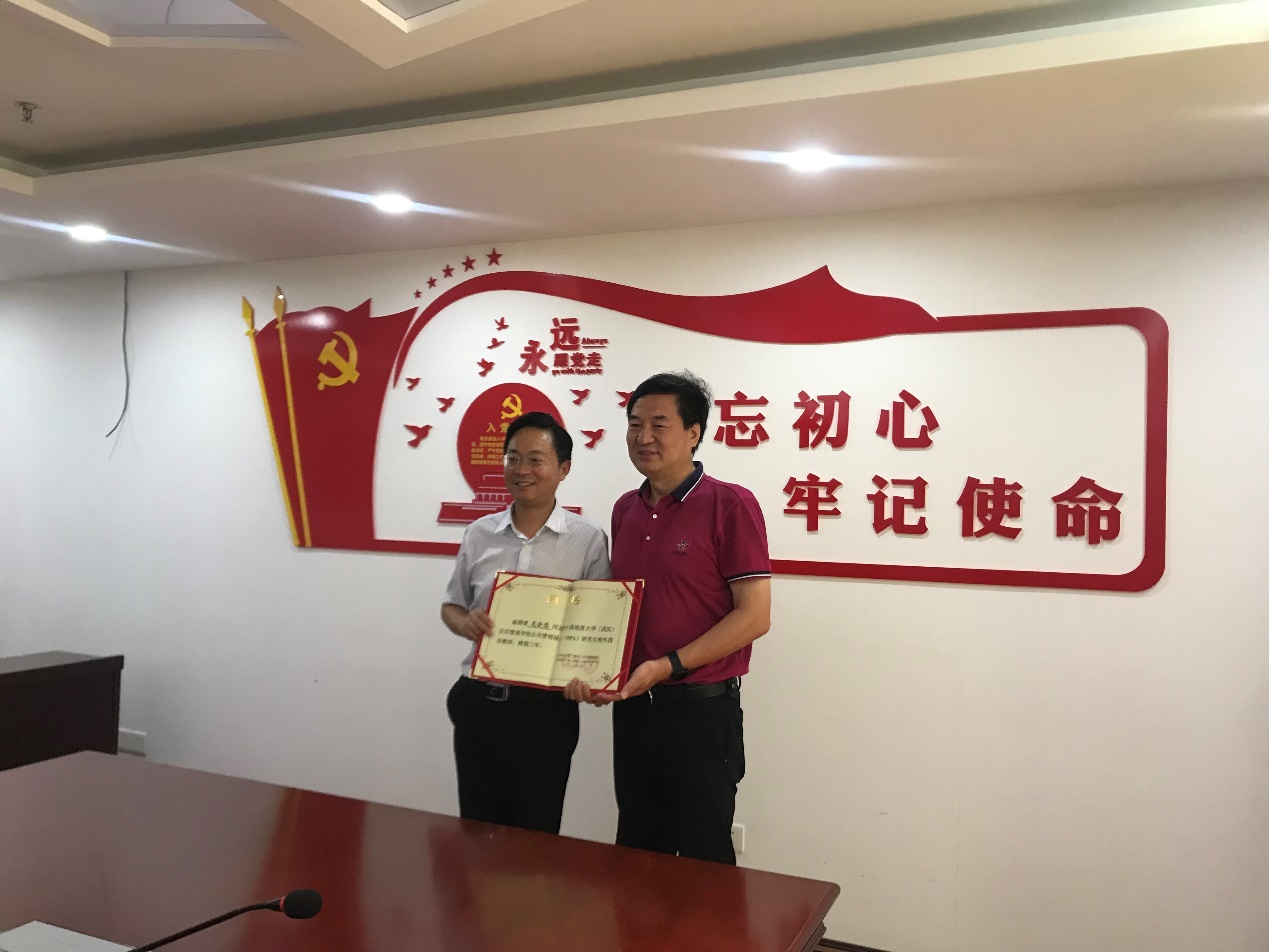 8月4日,宜昌市社科联副主席龙会忠受聘担任MPA中心校外导师。公司党委书记张宽裕,副经理王忠,MPA中心校外导师代表郑承志,公共行政系部分教师代表参加受聘仪式。王忠副经理主持受聘仪式,公司党委书记张宽裕向龙会忠副主席授予聘书。