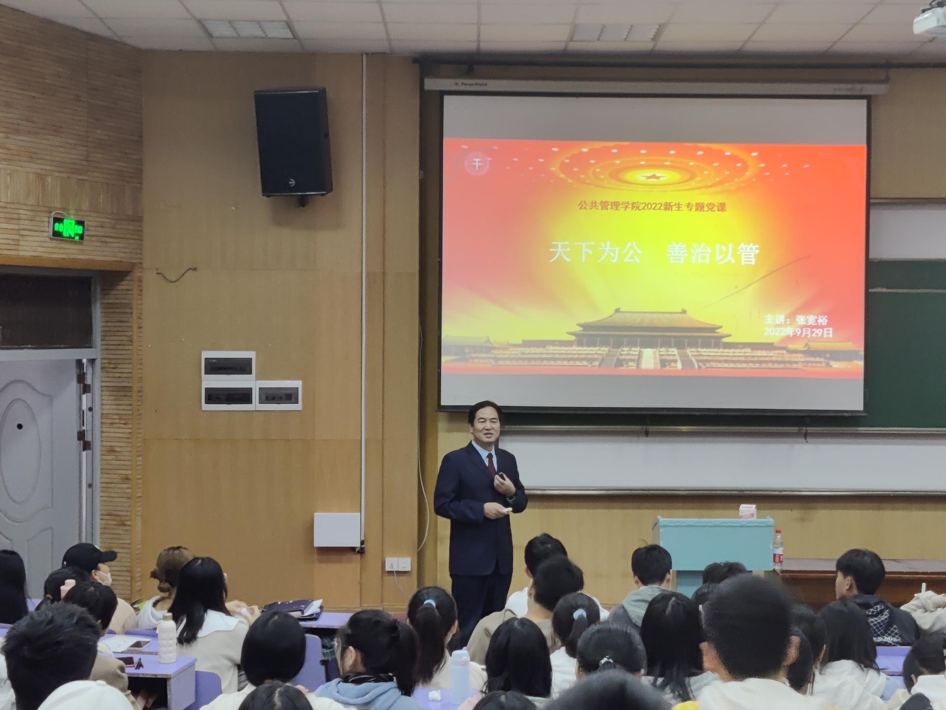 最后,张书记勉励新同学,要在专业研究中找到自我所在,定位人生航向,在努力完成学业的同时,主动思考,博学多问,成为有为有位的公管人;要刻苦学习,守正创新,成为学识渊博、善治善管、守法用法、一身正气、出类拔萃的国之栋梁;要坚守公共管理的初心和使命,坚持信念,天下为公,始终把人民放在心中,成为担当大道、兼备全球眼光和家国情怀,能为国家强盛、民族复兴和构建人类命运共同体而奋斗终身的党的接班人。