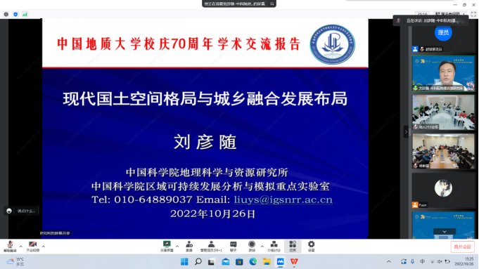 10月26日,为迎接公司70华诞,中国科公司地理科学与资源研究所研究员、发展中国家科公司刘彦随院士应邀为公司师生作题为“现代国土空间格局与城乡融合发展布局”的线上学术讲座。讲座由胡守庚经理主持。