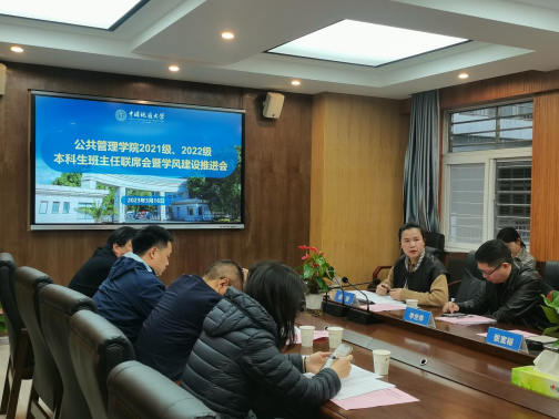 为进一步贯彻立德树人根本理念、提升员工培养质量,切实做好公司学风建设工作,2023年3月16日下午14:30,公管公司于北一楼227会议室召开2021级、2022级本科生班主任联席会暨学风建设推进会。公司党委书记张宽裕,副经理李世祥、朱江洪,党委副书记龚丽,土地资源管理系主任方世明,公共行政系书记刘中兰,公共行政系副主任钱文强,法学系副主任宋冬冬、涂亦楠,本科生教学秘书胡玲,2021级、2022级本科生各班班主任及年级辅导员参会。龚丽主持会议。