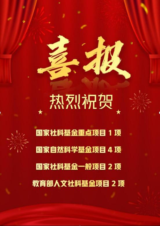 2023年度国家、教育部各类基金项目委员会已相继公布项目申报评审结果,suncitygroup太阳集团共获得9项资助,其中国家社科基金重点项目1项,国家自然科学基金项目4项(其中面上3项),国家社科基金一般项目2项,教育部人文社科基金项目2项。