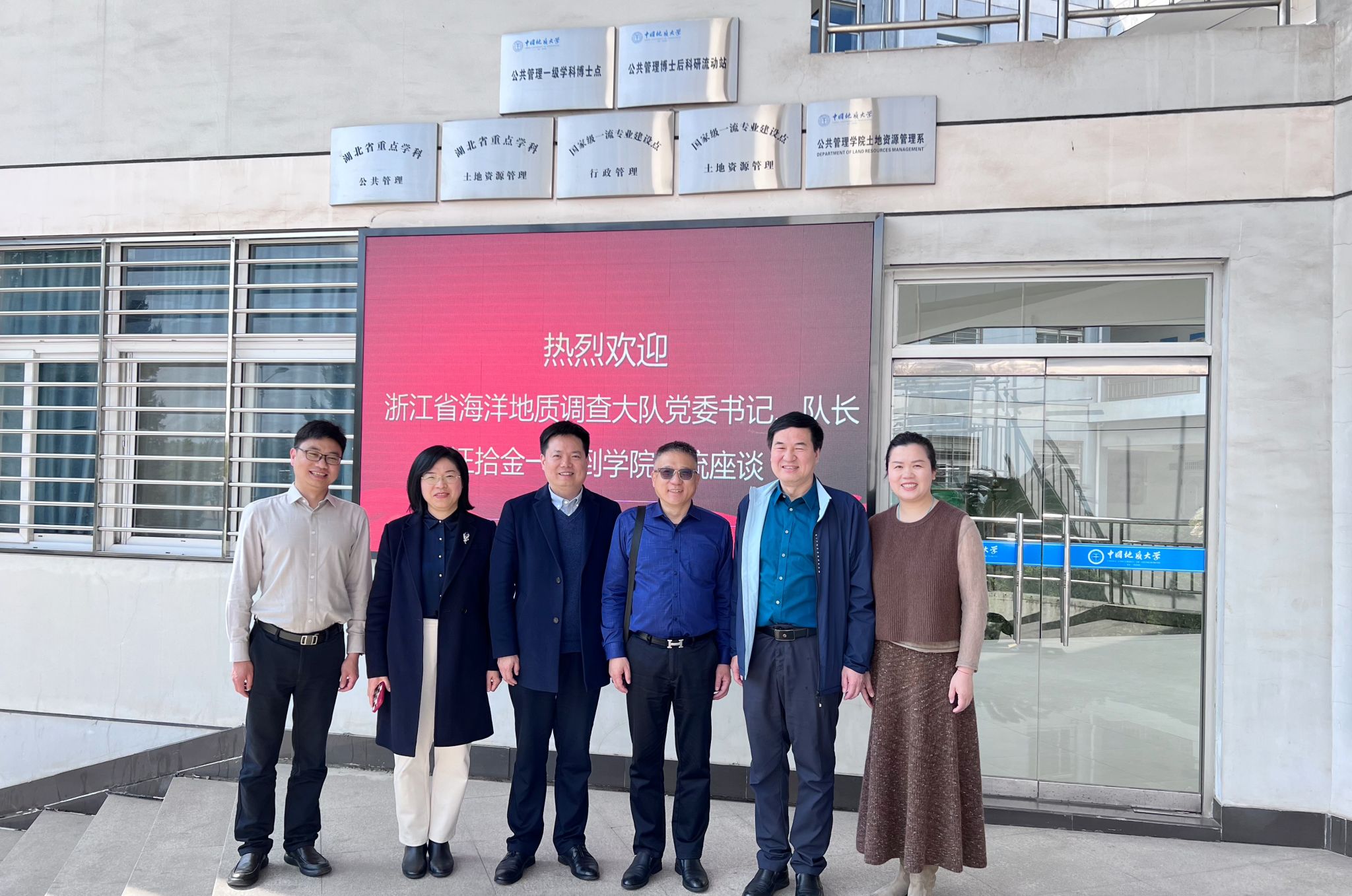 3月22日,浙江省海洋地质调查大队党委书记、队长汪拾金,副队长、纪委书记、工会主席黄慧琴,海洋基础研究中心主任徐征一行来公司座谈交流。公司部分领导班子成员党委书记张宽裕、经理胡守庚、副书记龚丽、副经理吕凌燕,教授代表王占岐教授、土地资源管理系主任方世明、副主任杨建新、综合办彭珂等人参加座谈会。