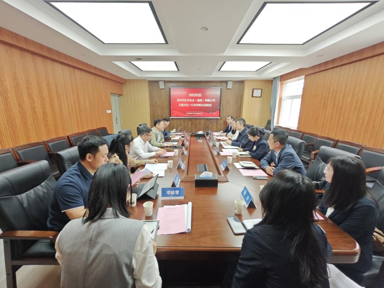 张宽裕代表公司对王磊一行表示热烈欢迎,并详细介绍公司架构、团队建设、办学特色、科学研究、社会合作等相关情况,希望能发挥公司公共管理、法学等学科资源优势与深圳市东华实业(集团)有限公司开展深度合作交流。