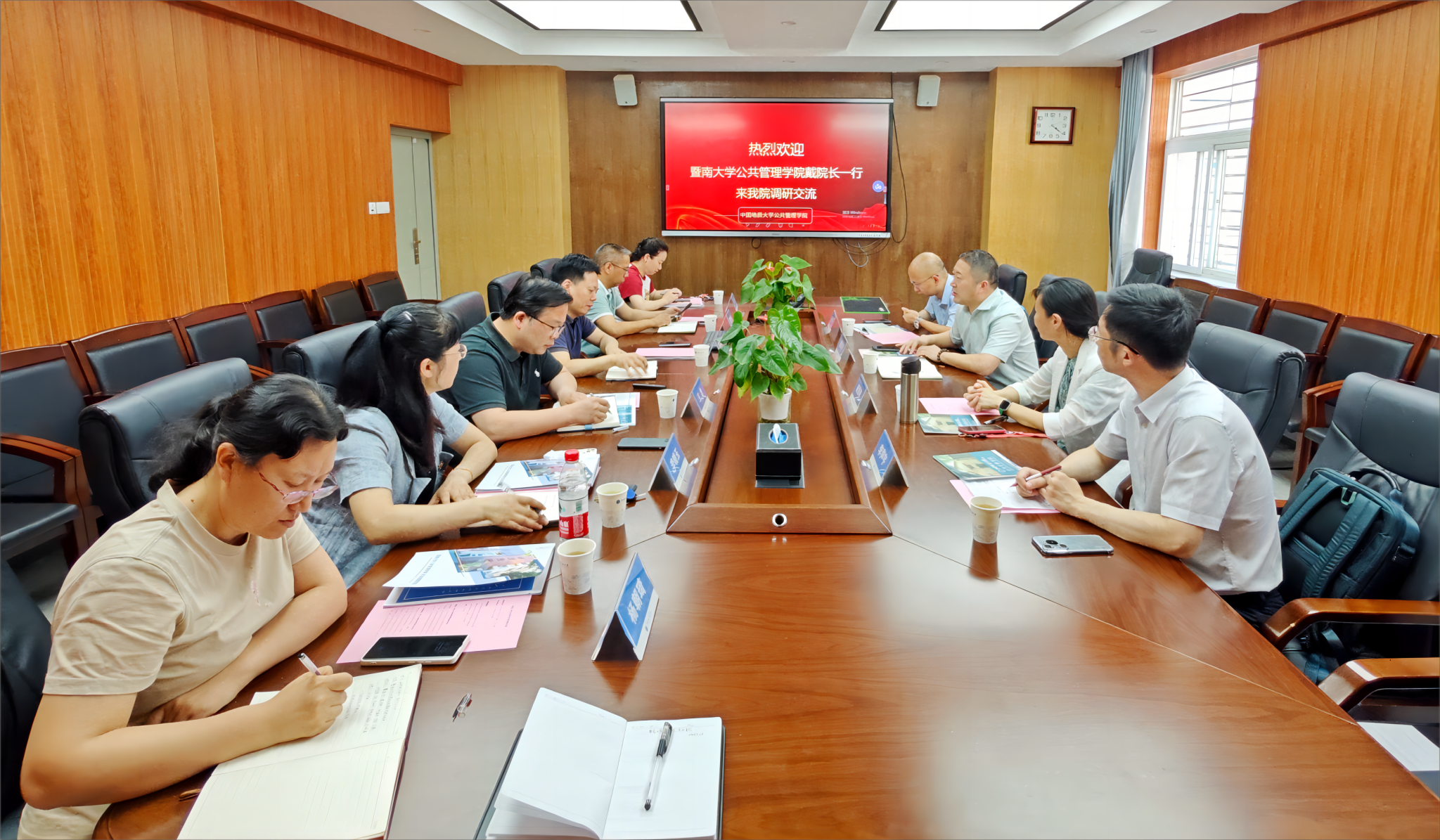 5月28日下午,暨南大学suncitygroup太阳集团/应急管理公司经理戴胜利、副经理胡涤非、经理助理王子成、培训中心主任李声宇一行来院调研交流。公司经理胡守庚、副经理王忠、土地资源管理系主任方世明、公共行政系主任李晓玉、业务管理办公室主任杨朝琦、MPA中心办公室主任邹玮等参加座谈会。