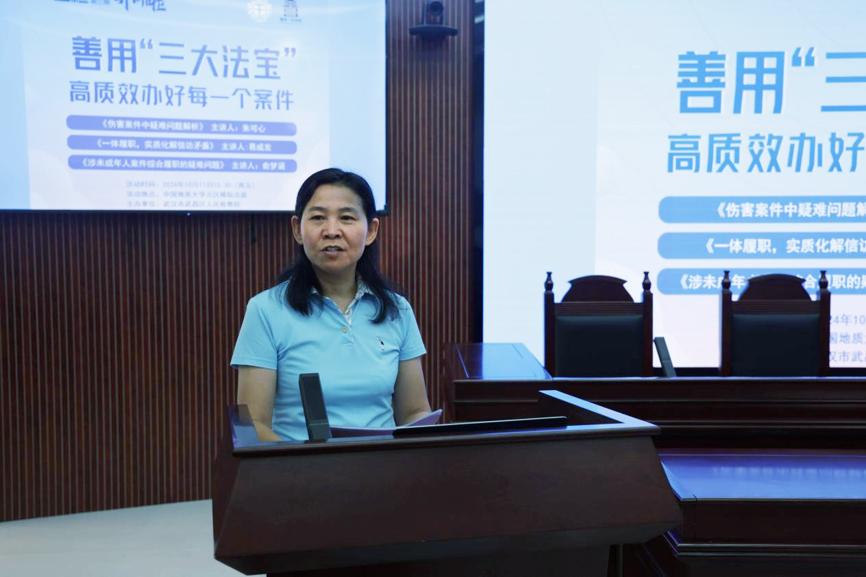 检察官朱可心以“伤害案件中疑难问题解析”为题,以真实案例为引,讲述了检察机关在办理伤害案件时遇到的疑难问题及相应的解决措施,并从刑法谦抑性视角出发,通过调解,促使矛盾纠纷实质性化解。